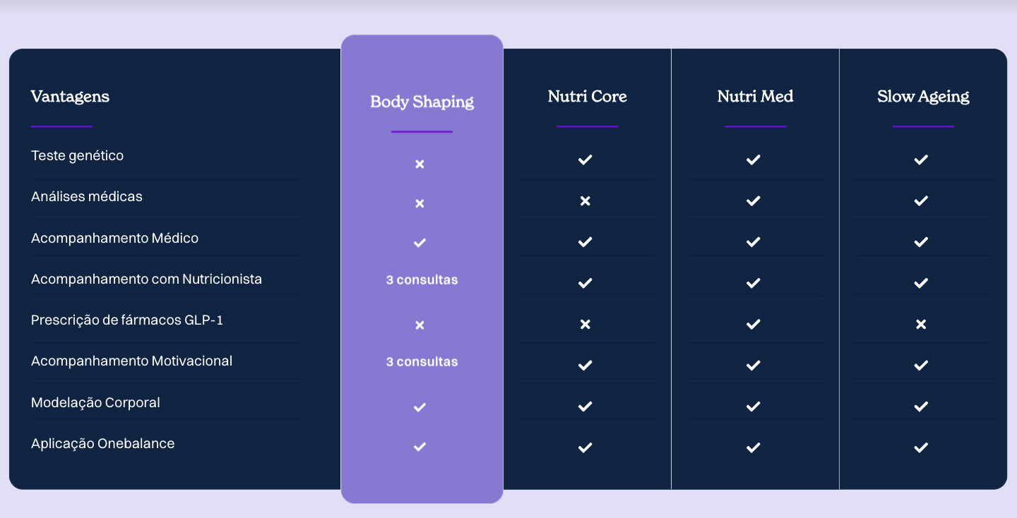 Plano nutricional personalizado com 3 consultas ao longo do programa.