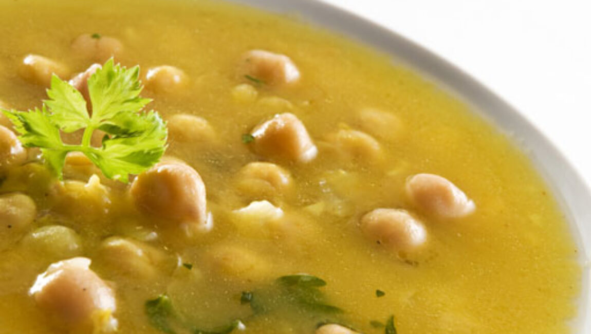 Este mês continuamos a apostar nas sopas nutritivas e de baixas calorias. Hoje vamos sugerir um creme de grão-de-bico. Este legume é um super alimento pois é rico em ácido fólico, proteínas, sais minerais, vitaminas do complexo B e ómega 3 e 6. Coloque numa panela uma lata pequena de grão, a parte branca de um alho francês e uma courgette grande cortada aos cubos e sem casca. Deixe cozinhar em lume brando, fervendo só 10 min. para que os legumes não percam as suas qualidades. No fim tempere com sal e um fio de azeite. Bata tudo num robot de cozinha até obter um puré. Pode deixar alguns grãos de fora para decorar. Uma delícia!