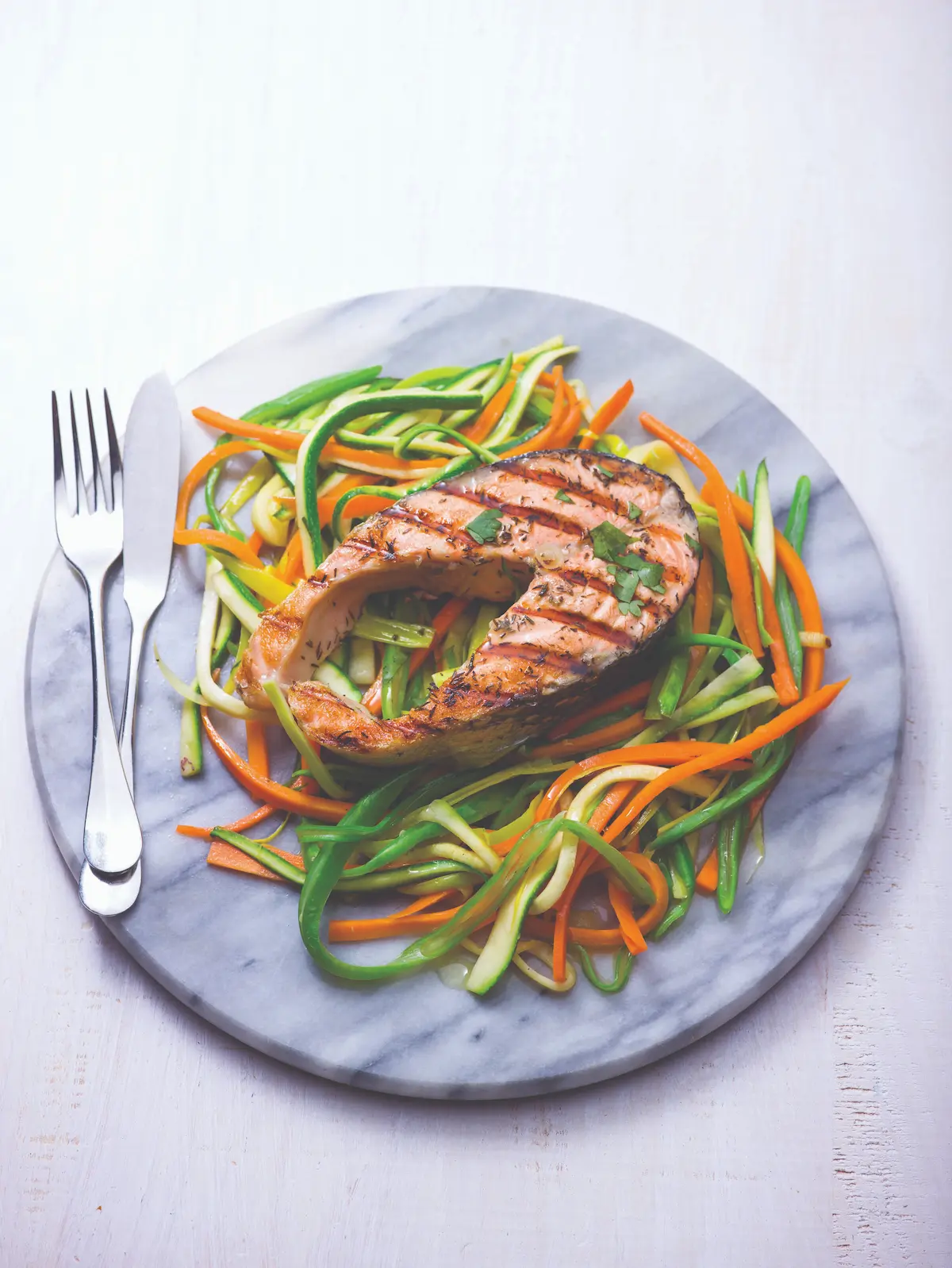O salmão é um peixe gordo que se distingue pela cor e pelo sabor peculiar. Rico em ácidos gordos polinsaturados, principalmente ómega 3, as suas propriedades nutricionais oferecem benefícios para a saúde cardiovascular. Esta gordura ajuda a combater os processos inflamatórios, assim como a reduzir os níveis de colesterol LDL e a aumentar os de HDL.