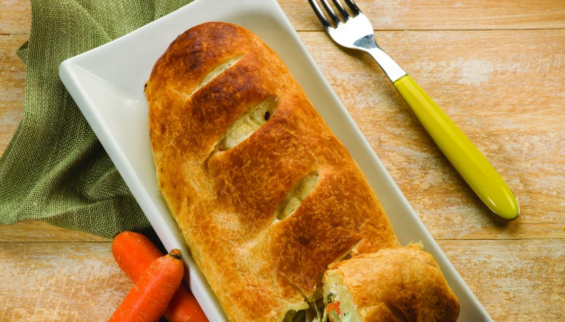 Sirva o strudel acompanhado de uma salada de folhas verdes e agrião.